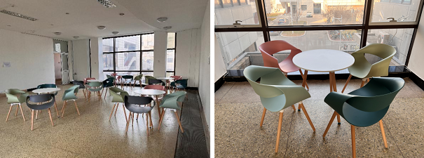 做好师生工作保障。在化工楼A、D座增设3台饮水机;利用化工楼A、C座之间的连廊打造休闲饮水区,在二、三层分别增设5套桌椅,为师生交流讨论、谈心谈话提供温馨场地,鼓励师生劳逸结合,在身心健康的前提下高效率地开展工作和学习。