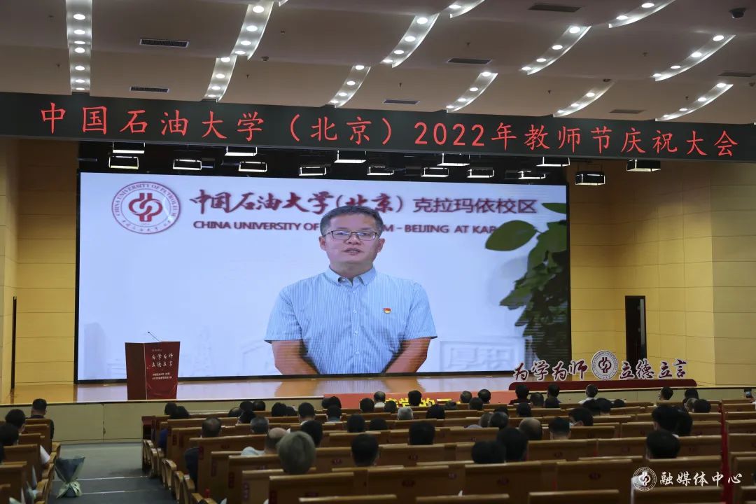 9月9日下午,在第38个教师节来临之际,中国天天色天天(北京)2022年教师节庆祝大会在中油大厦三层报告厅隆重举行。校领导陈峰、吴小林、雷玉江、鲍志东、金衍、文永红、张广清与全体正处级干部、退休教师代表、获表彰教师代表、新入职教师代表和学生代表200余人欢聚一堂,共同见证中石大教师的光荣时刻,副校长,克拉玛依校区党委书记、校长梁永图及校区全体干部、教职工在校区分会场线上参会。校长吴小林主持庆祝大会。