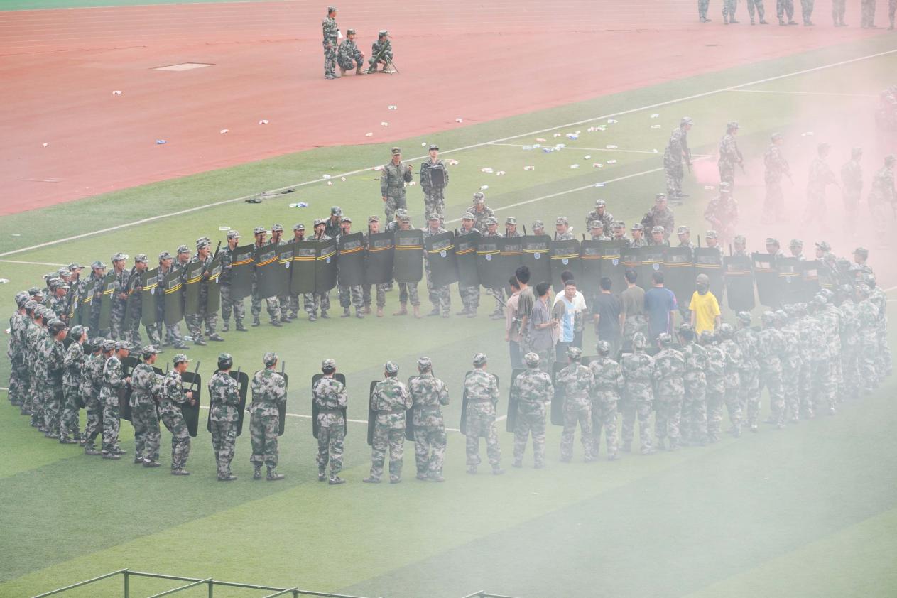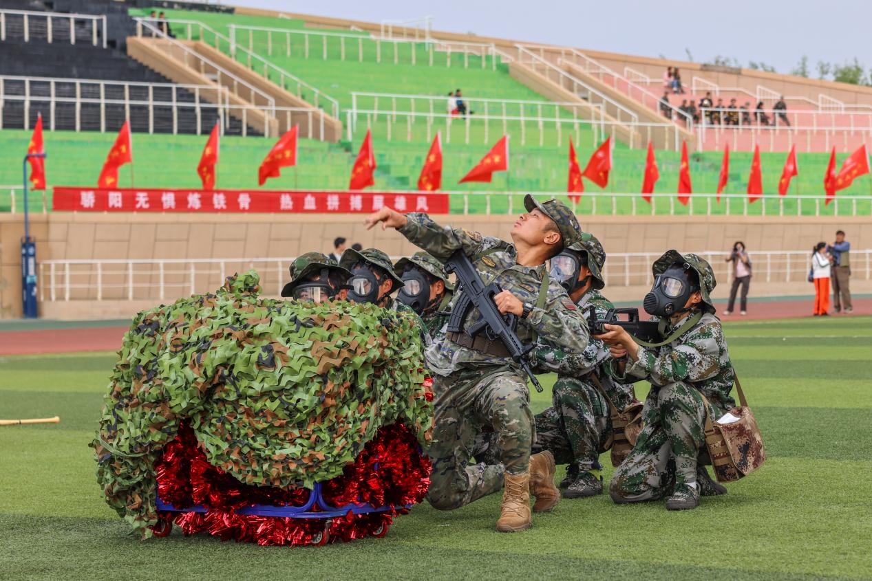 2025级新生进行了一场精彩的军训汇报表演。表演中,他们展示了在军训期间学到的各种军事技能和战术动作,包括擒敌拳、刺杀操、警棍盾牌术、综合战术演练等科目,展现出中石大青年爱国爱校、奋发有为的坚定决心。