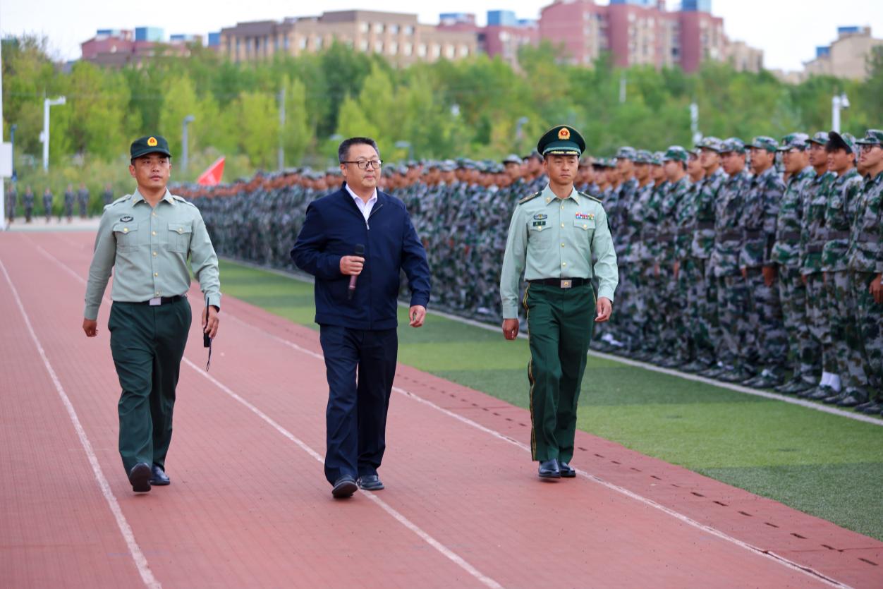 迎校旗仪式后,克拉玛依校区党委书记、校长李军检阅军训团。同学们精神抖擞、口号响亮,展现出中石大学子昂扬向上的精神风貌。