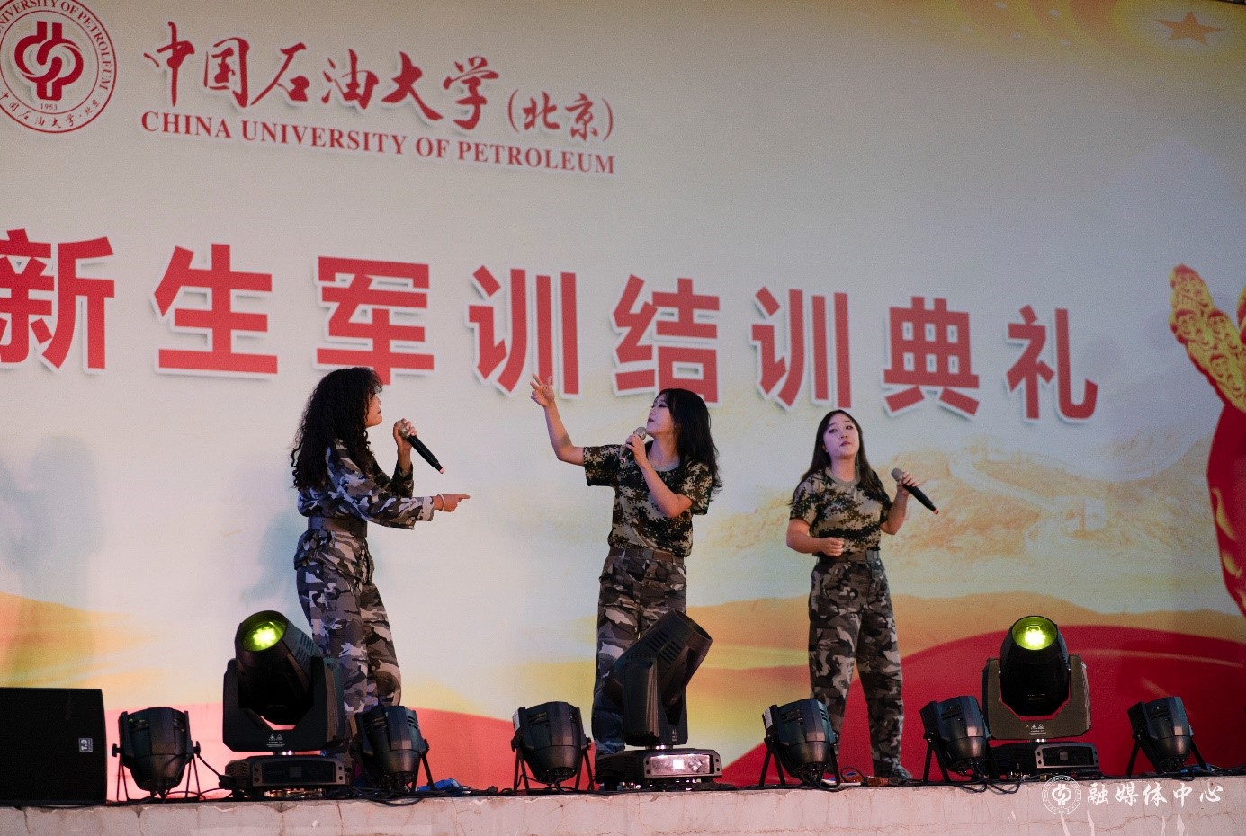 清辉疏朗夜,载歌载舞时。新生们用抒情曲、摇滚乐、说唱等丰富多彩的表演,打造了一场听觉盛宴。全体参演学生齐唱校歌《我为祖国献石油》,将晚会整体气氛推至高潮。新生们用铿锵有力的歌声表达了坚定理想信念、矢志报国奋斗的信心与决心。