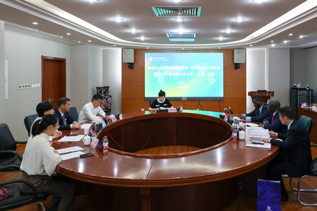 Herry Mané感谢中石大的热情接待,并表示几内亚比绍教育部将与中国教育部在人才培养方面寻求更多合作机会,进一步推进两国文化交流,实现互惠共赢,打造南南合作的典范,并期待未来与中石大在油气资源、矿产资源勘探及新能源开发与利用方面有深入合作。