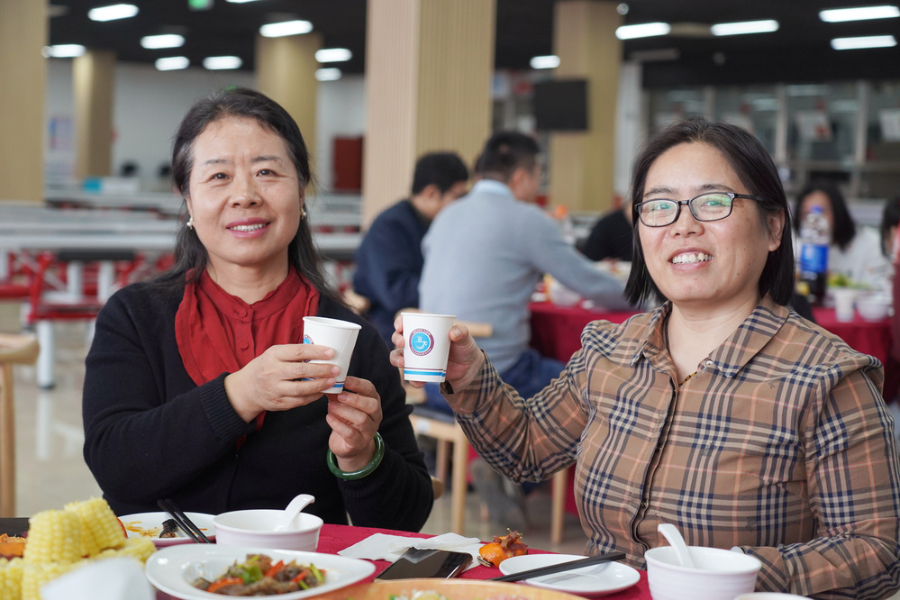 团年饭现场,师生共同举杯,致以美好祝愿。餐厅为师生们准备了丰盛的团年饭,美味可口的饭菜里溢出的是师生同心的温暖与幸福。