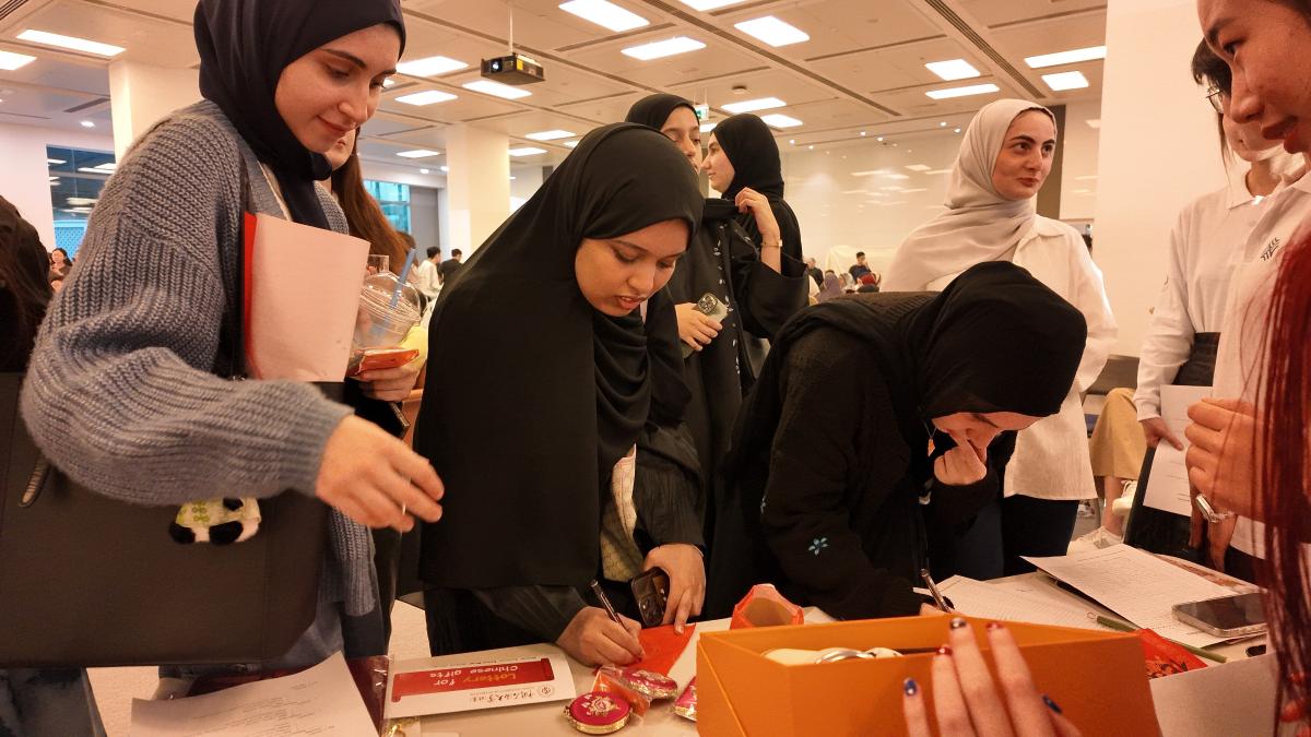 在“中阿文化交流节”活动中,师生们通过表演舞龙、伞舞、吹葫芦丝、撰写书法对联等节目,向哈利法大学的师生们生动展示了中国传统文化的深厚底蕴和魅力风采。中石大师生齐唱《北京欢迎你》歌曲,让阿联酋人民感受到中国人民的热情,为中阿友谊传递温暖与祝愿。在学校展示环节,中石大师生布设了学校宣传展台,两位中石大学生代表向全场嘉宾演讲《Embrace the Energy Future》,在介绍中石大的同时还积极宣传学校的国际交流项目,邀请阿联酋友人来华。超过五十名阿联酋学生表示愿意在今年夏天来中石大参加学校的来华夏令营项目,并写下了他们对学校和中国的祝福寄语。此次展示提升了中石大在阿联酋师生心中的国际知名度和形象,促进了中阿能源教育合作。