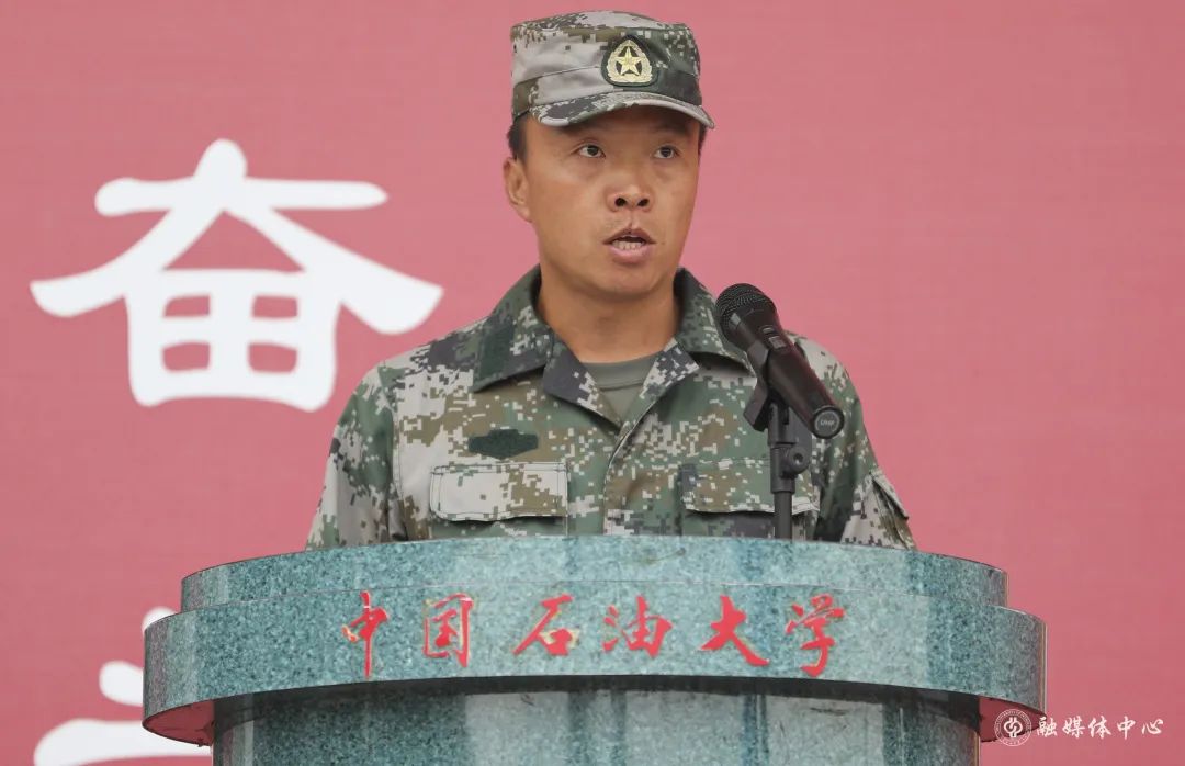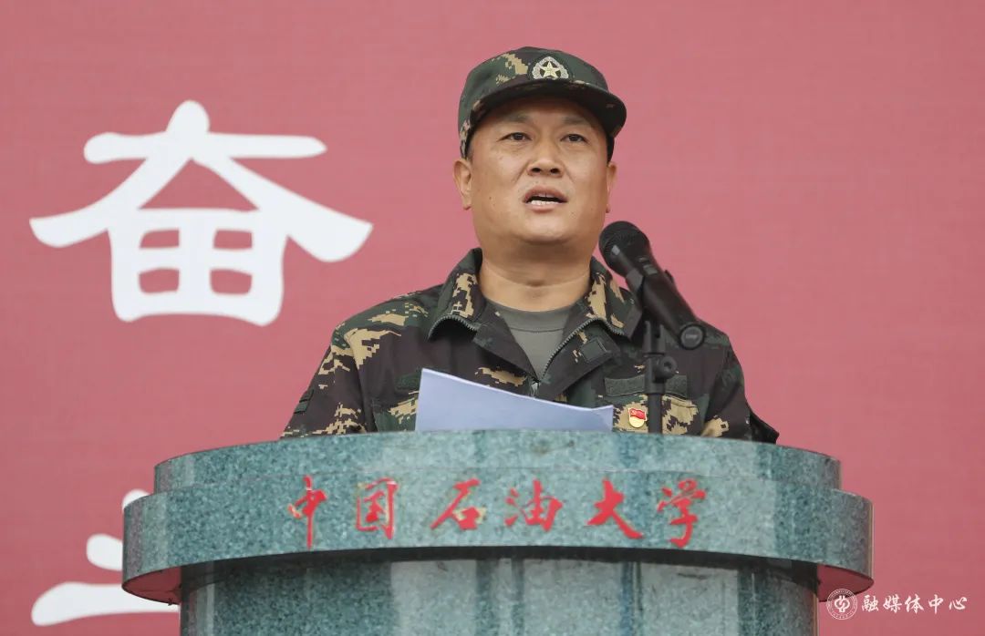 参训学生代表、理学院姜泽坤发言,表示将遵守纪律、迎难而上、团结协作,努力学习国防知识,增强国防意识,继承和发扬中石大精神。