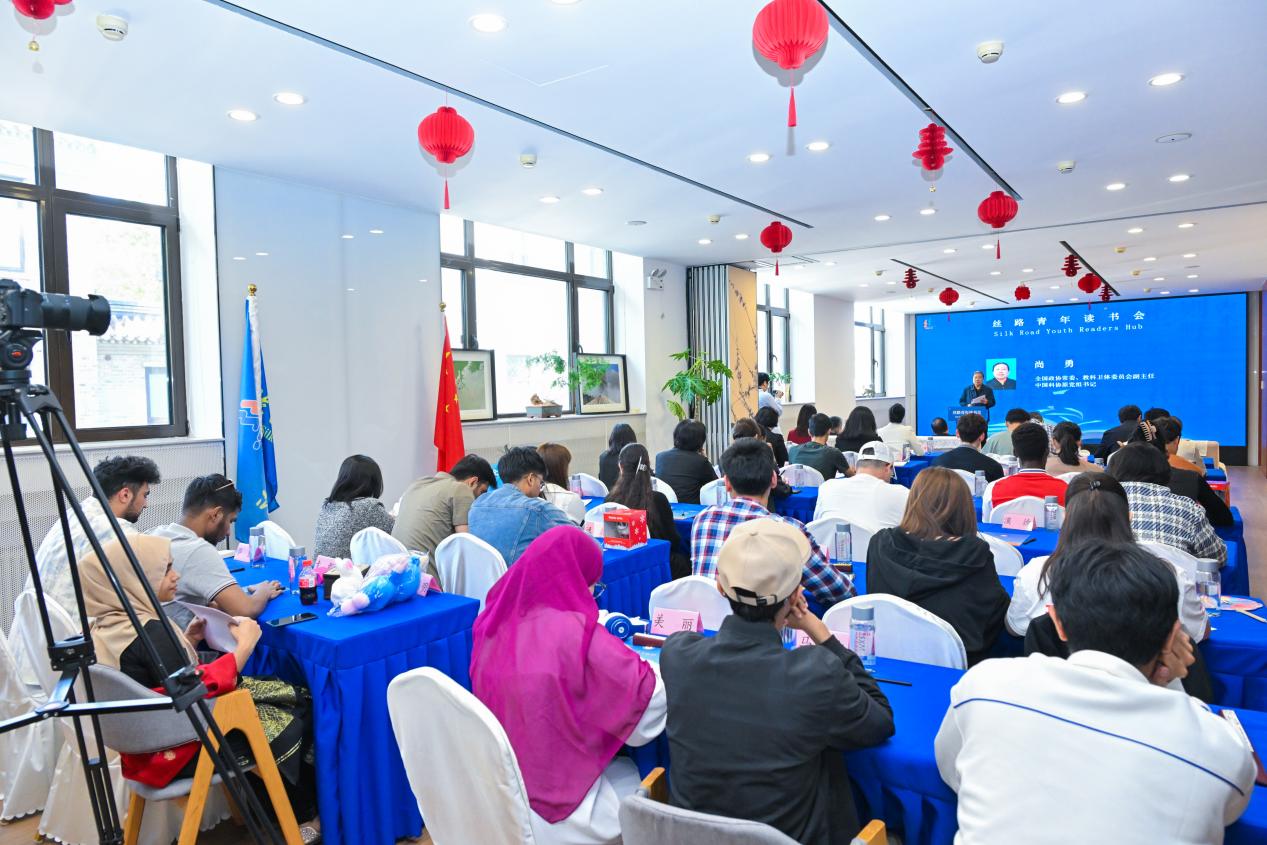 读书会现场,第十二届全国政协副主席刘晓峰、全国政协常委尚勇、对外经贸大学王志民教授等嘉宾与青年代表共聚一堂,分享阅读心得。刘晓峰勉励青年以开放心态拥抱多元文化,通过阅读拓宽视野,推动不同文明相互尊重、和合共生;尚勇给出了针对阅读的建设性建议;丝路国际智库秘书长杨东平希望青年以阅读为纽带,传承文明、激发创新,共建“云端丝路青年书院”。