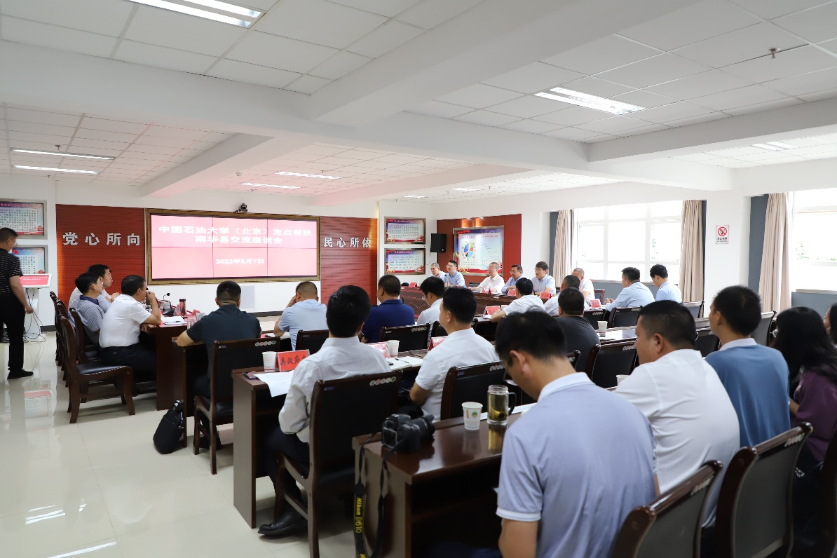 8月8日上午,陈峰一行与楚雄州委书记刘勇,州委副书记、州委政法委书记崔同富,州委常委、州委宣传部部长李汶娟,州委常委、副州长张建军以及南华县相关负责同志进行座谈交流。刘勇介绍了楚雄州基本情况并代表州委州政府对学校开展的各项帮扶工作表示感谢。他表示,学校真金白银、真抓实干支持楚雄州特别是南华县的脱贫攻坚工作,充分展现了学校的责任担当。他希望学校继续发挥区位、行业、人才、科研优势,做好各类资源的桥梁纽带,引导新能源、石油化工等产业落地楚雄,积极帮助宣传楚雄州特别是南华县野生菌等旅游文化品牌,进一步巩固脱贫攻坚成果,助力楚雄州南华县经济社会发展和人民群众增收。