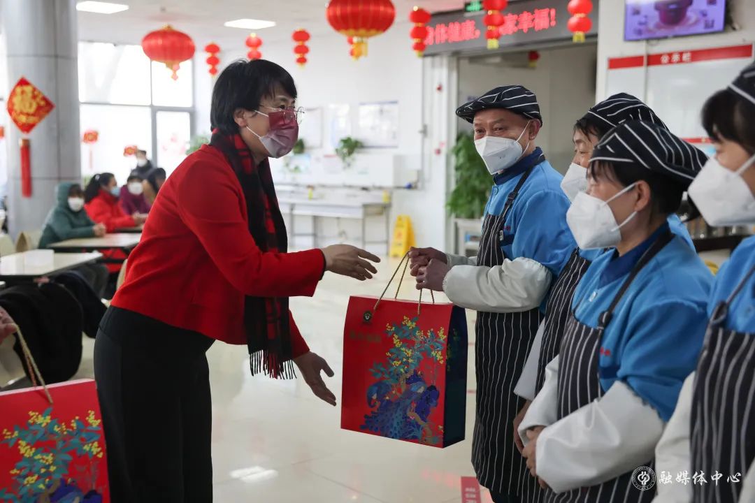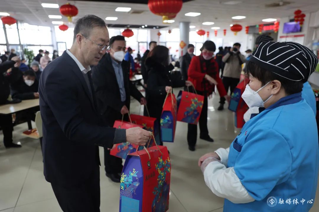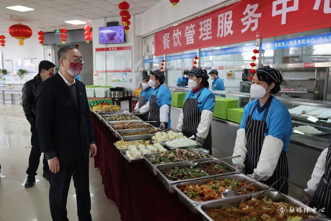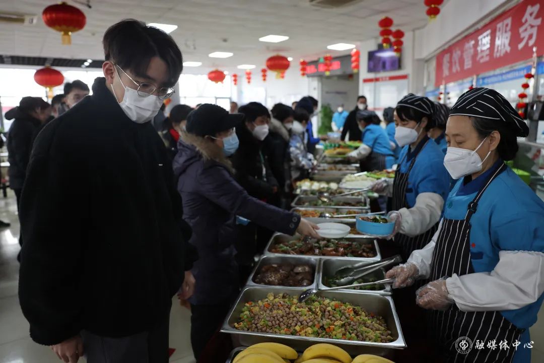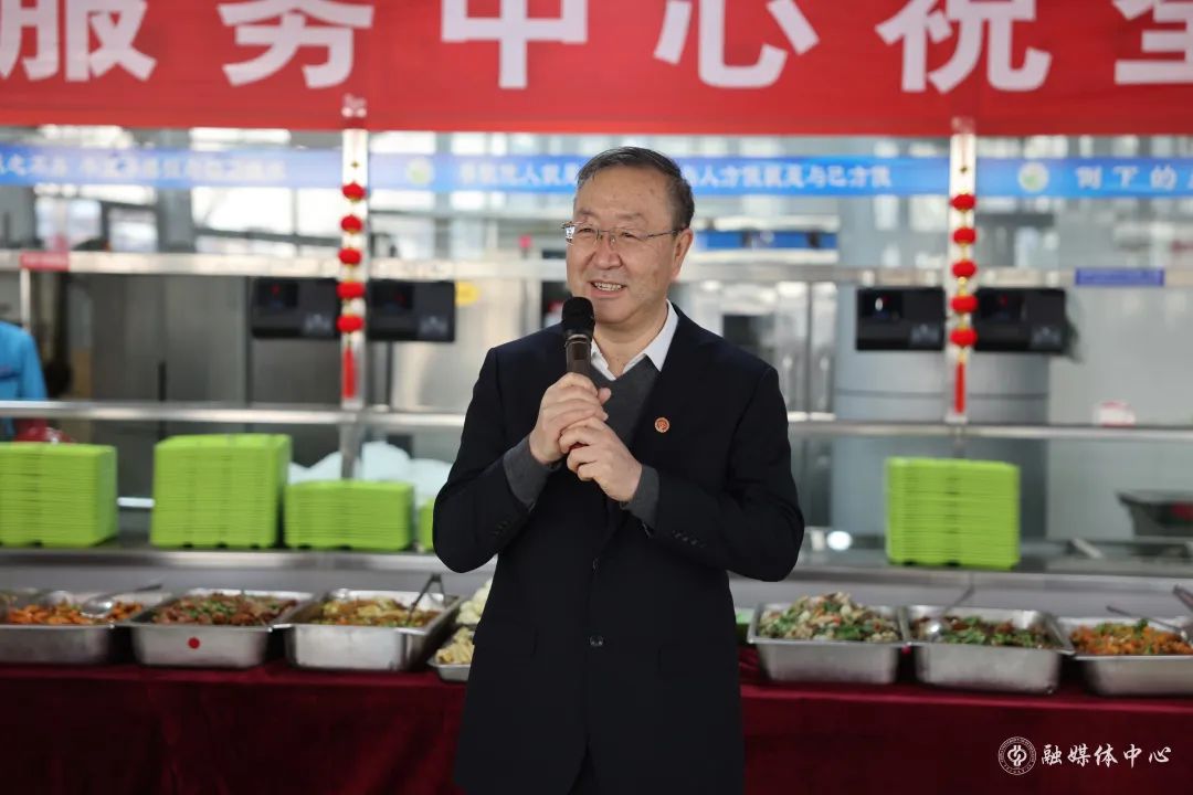 临近中午,陈峰、吴小林、文永红、刘植昌一行来到第二食堂,慰问食堂工作人员,并与春节留校师生员工共进午餐,感谢教职员工一如既往的辛勤坚守和默默付出,向全体留校师生员工致以新春的美好祝福和诚挚问候。