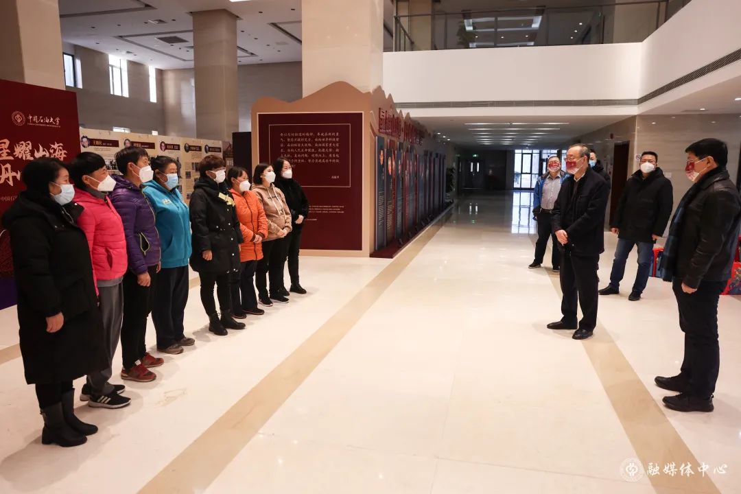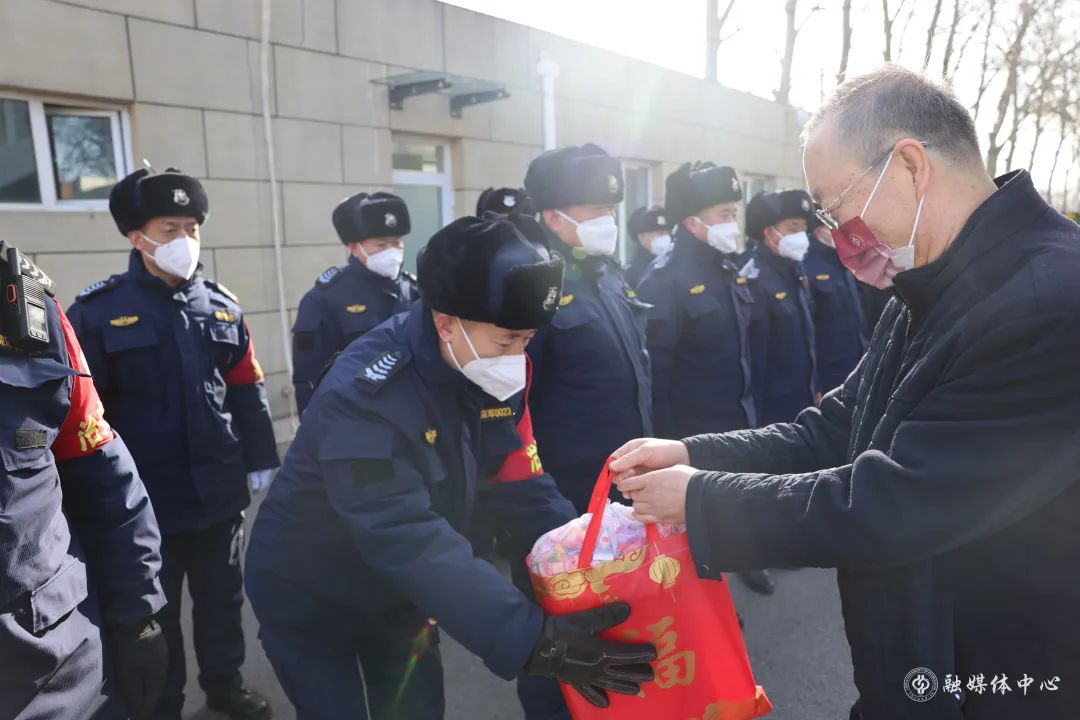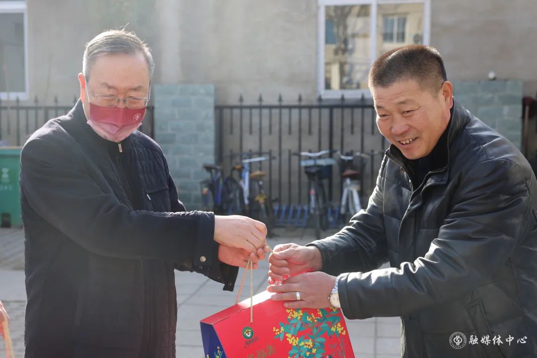 陈峰、刘植昌等在主楼、学校东门看望慰问了物业、保洁人员和值班保安,在动力维修公司看望慰问动力维修班值班人员,在学五楼看望慰问公寓管理人员,询问了寒假期间安全保卫、后勤保障等工作情况和值守人员工作生活情况,代表学校和全校师生向他们一年来为人才培养、疫情防控、管理服务和各项事业发展作出的贡献表示衷心感谢,对他们春节坚守岗位、恪尽职守表示慰问,并送上学校精心准备的新春大礼包。