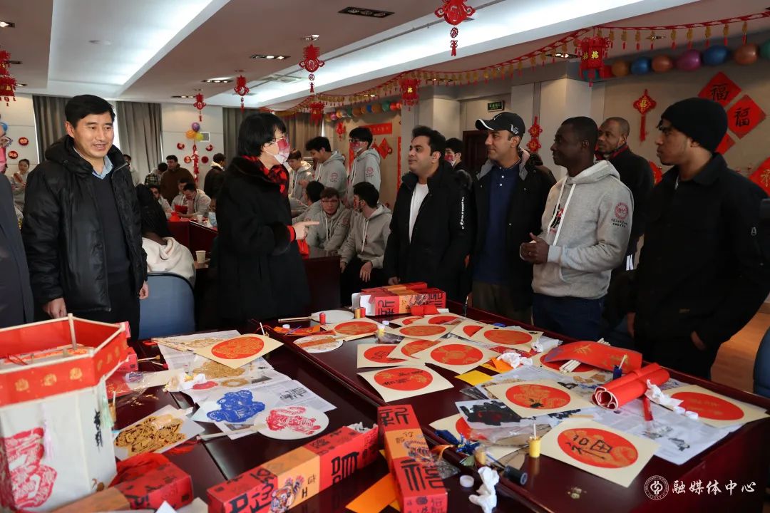 今年,还有来自哈萨克斯坦、土库曼斯坦、苏丹、莫桑比克等54个国家的140名国际学生在校过年。为引导国际学生深入感受中国春节文化,体会地道中国年味,国际教育学院专门组织开展了中外学生新春文化主题活动,邀请中外学生共同包饺子、剪窗花、做锦鲤、做宫灯、印吉祥画。