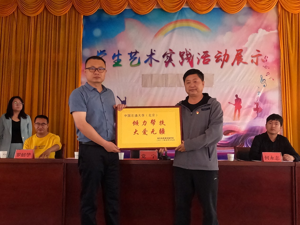 李森林代表思源学校向中石大颁发了“倾力帮扶 大爱无疆”捐赠牌匾。李森林对中石大志愿者送温暖、献爱心行动表示感谢,表示爱心捐赠不仅仅是对同学们的物质帮助,更是精神鼓舞,希望同学们珍惜时间、努力学习,践行“饮水思源,放飞梦想”的校训,不负众望、早日成才,感恩国家、回报社会。受捐赠学生代表表示,要把这份爱心转化为学习上的热情与动力,好好学习、天天向上,保持知重负重、直面挑战的昂扬斗志,潜心学习、执着专注,争做团结友爱、文明礼貌,有责任感、紧迫感和使命感的新时代少年。