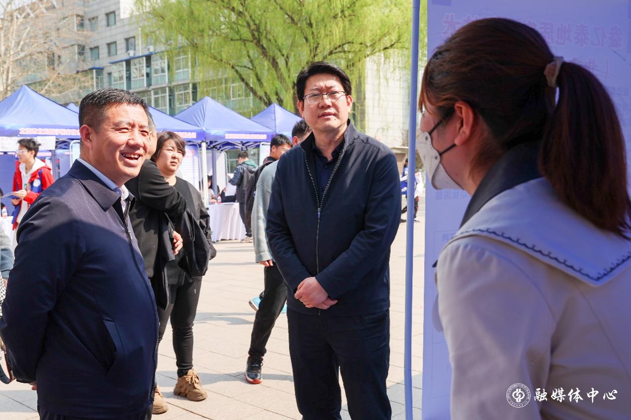 4月2日,昌平区第六届“英才聚昌”校园选聘系列活动之中国天天色天天(北京)校园双选会举办,这是昌平区2024年首场进高校招聘活动。昌平区人力社保局局长齐俊国、副局长柴龙钢,学校副校长韩尚峰来到双选会现场,指导毕业生求职。