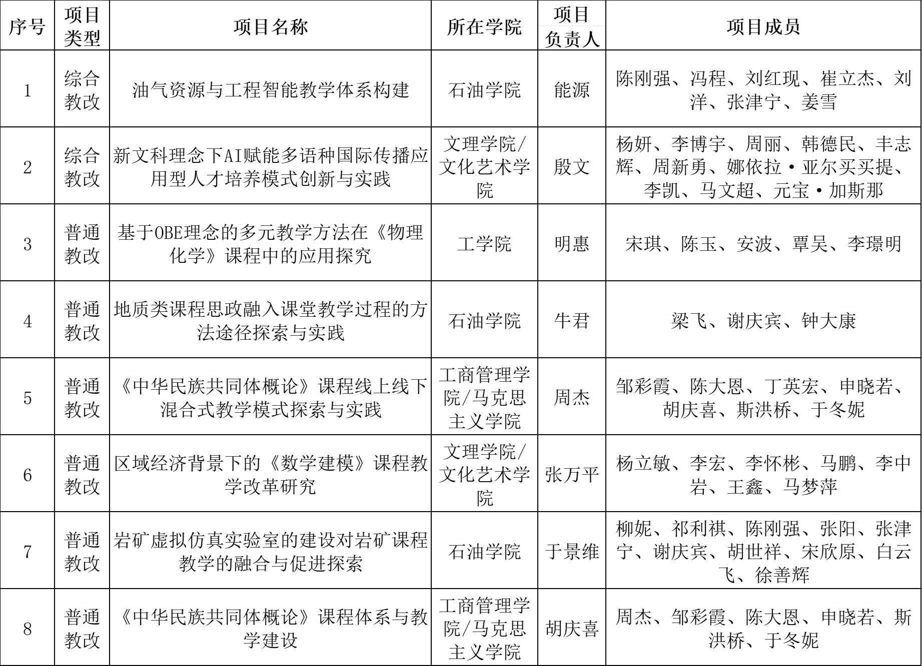 近日,新疆维吾尔自治区教育厅发布《关于公布2025年度自治区高校本科教育教学研究与改革项目立项名单的通知》,中石大克拉玛依校区8个项目获批立项,其中综合教改项目2项,普通教改项目6项。