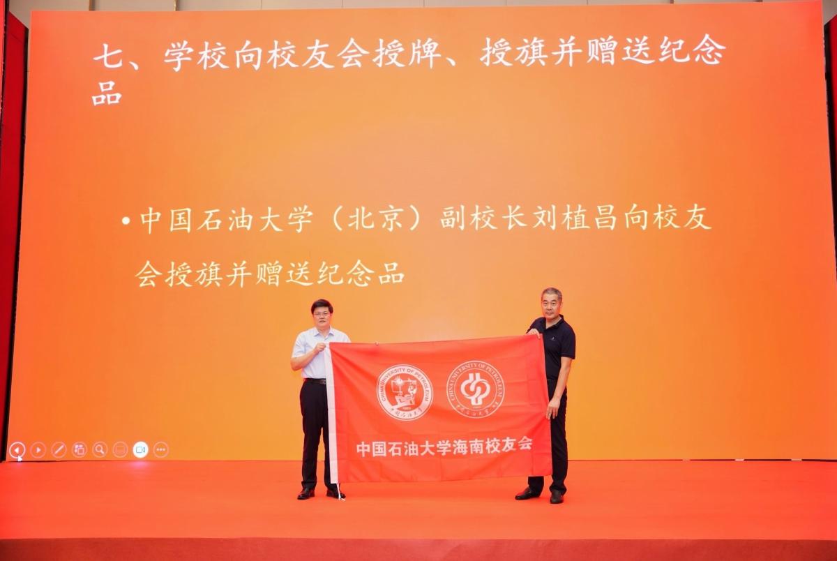 刘植昌代表学校向校友会授旗并赠送纪念品。他对海南校友会的换届表示祝贺,希望广大校友继续传承弘扬中石大精神,胸怀“国之大者”,把个人成长融入强国建设和民族复兴的伟大事业中,为党和国家多做贡献;希望广大校友能继续关心支持学校,积极为母校发展建言献策,添砖加瓦;希望广大校友常回家看看,母校永远是校友们坚强的后盾。
