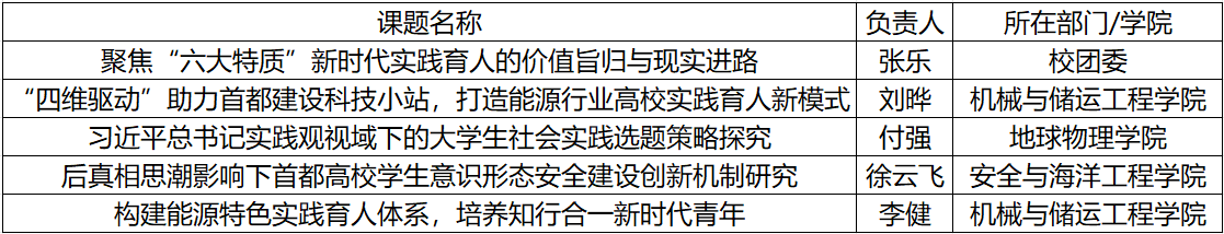 中石大5个项目获首都青少年工作和共青团工作研究课题立项