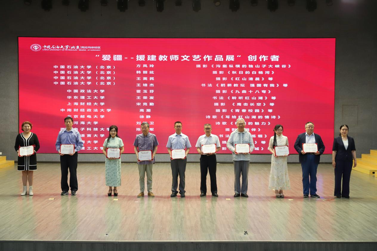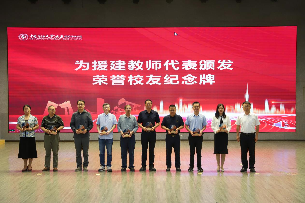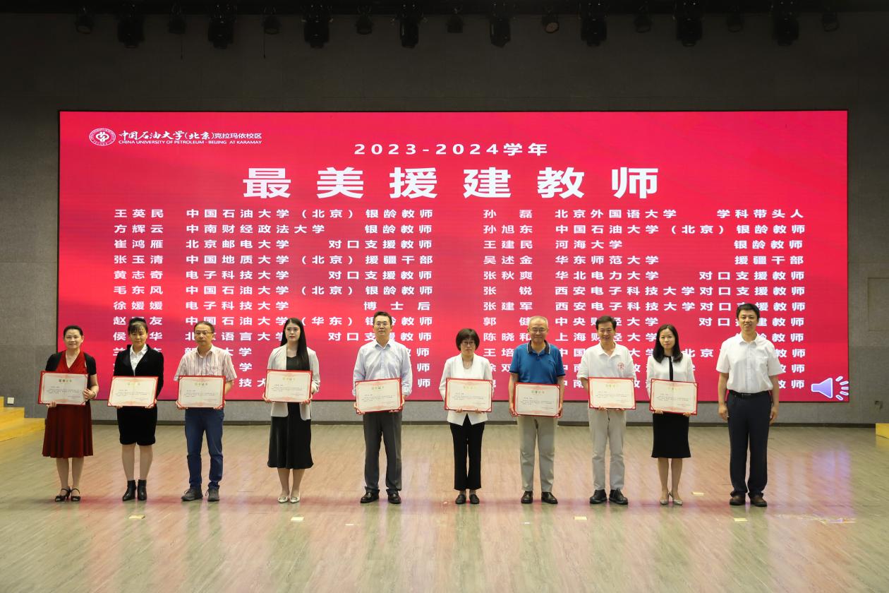 启动仪式上,教育部教师司二级巡视员陈武为校区2023-2024学年“最美援建教师”颁奖。克拉玛依市教育局党组副书记、局长张应勋为克拉玛依市援建教师名师工作室主持人授牌。校区党委副书记徐长亮为援建教师代表颁发校友纪念牌。校区副校长、总会计师张红艳为“援建教师文艺作品展”创作者颁发收藏证书。