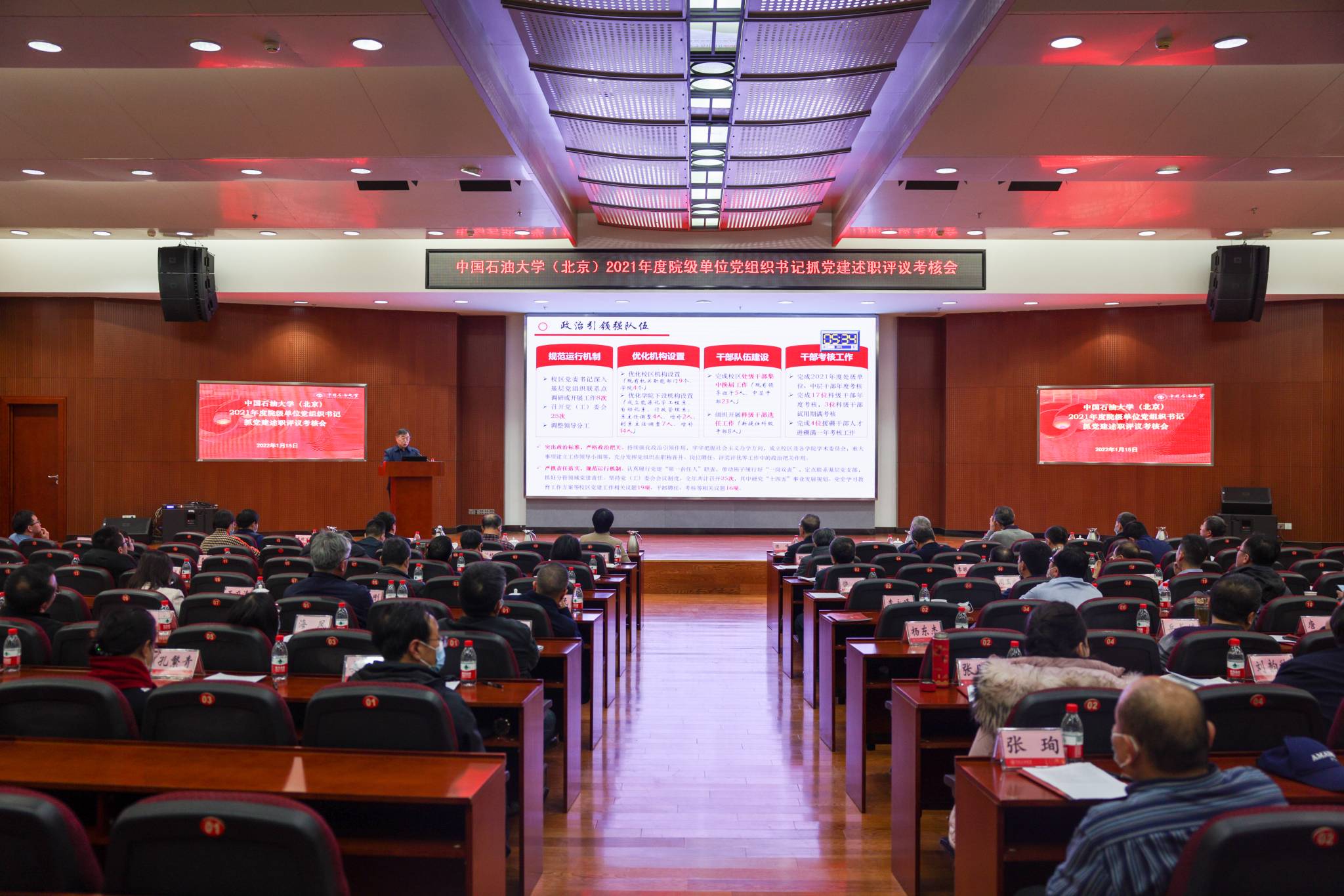 1月15日下午,中国天天色天天(北京)在翠宫报告厅召开2021年度院级单位党组织书记抓党建述职考核会。全体校领导、党委委员、纪委委员、党群部门负责人、院级单位党组织书记和部分师生代表60余人参加会议。