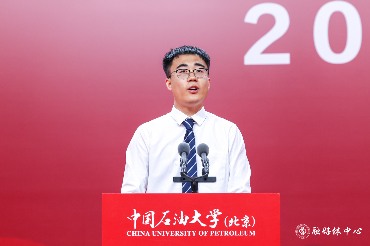 毕业本科生代表、克拉玛依校区张茂沅,毕业研究生代表、校本部新能源与材料学院博士生李响分别发言,表达了对母校、师长的感恩和对同窗、朋友的不舍,分享了学习和科研中的感悟,表示将秉持家国情怀,志不求易、事不避难,以奋斗之姿挺膺担当,镌刻中石大人的时代勋章。