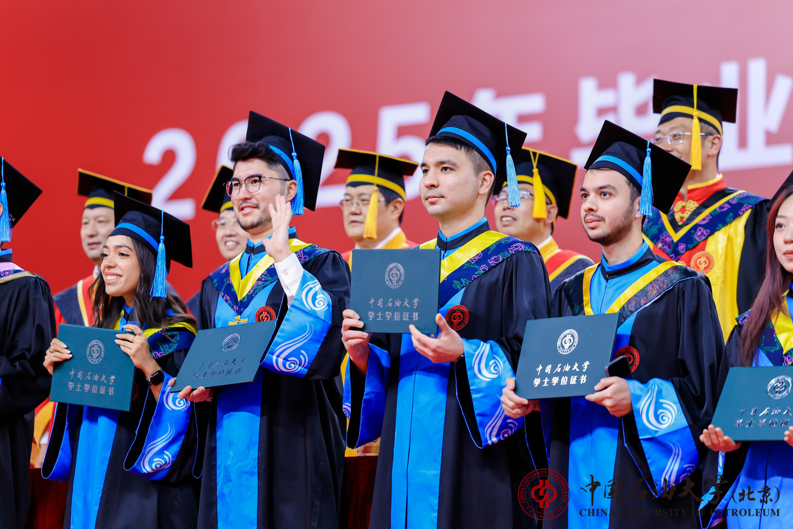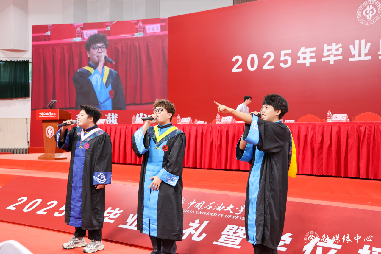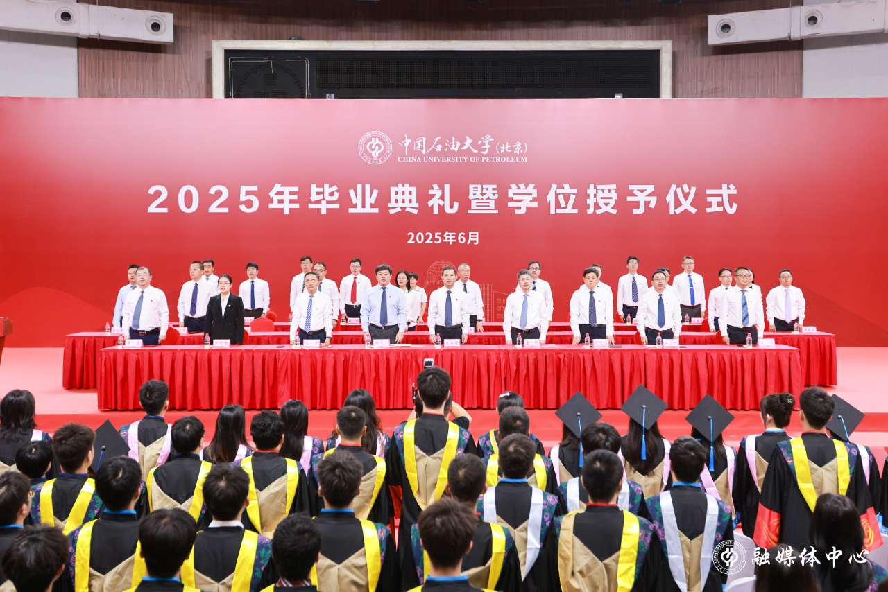 典礼在《我为祖国献石油》的嘹亮歌声中圆满落幕。典礼结束后,学校举行了2025届毕业生学位授予仪式。