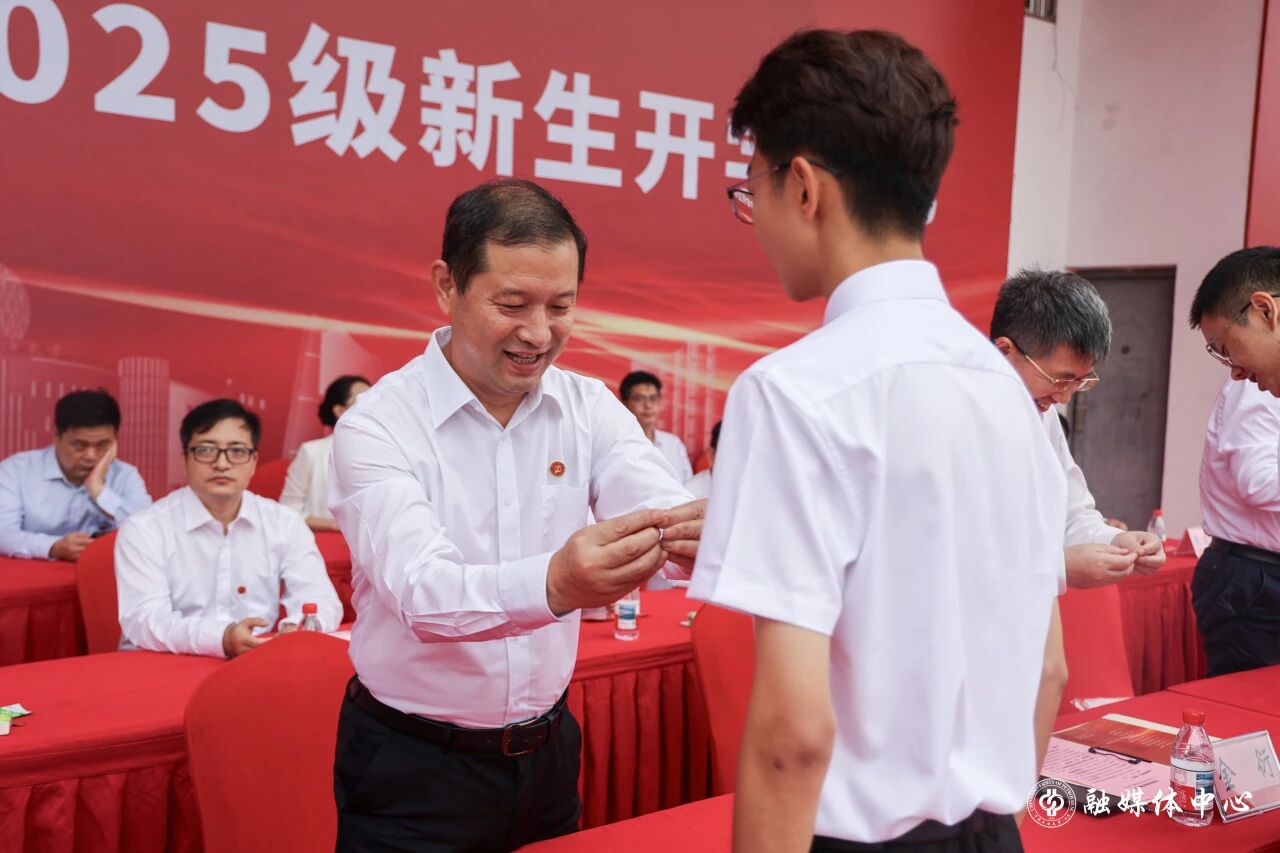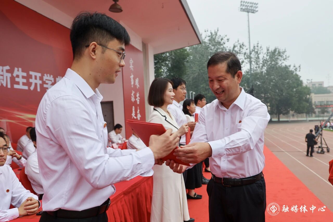 步入大学,班主任接过引路人的担子,陪伴学生成长成才。学校党委书记王同奇为新生班主任代表颁发聘书,勉励他们恪尽职守、育人润心。