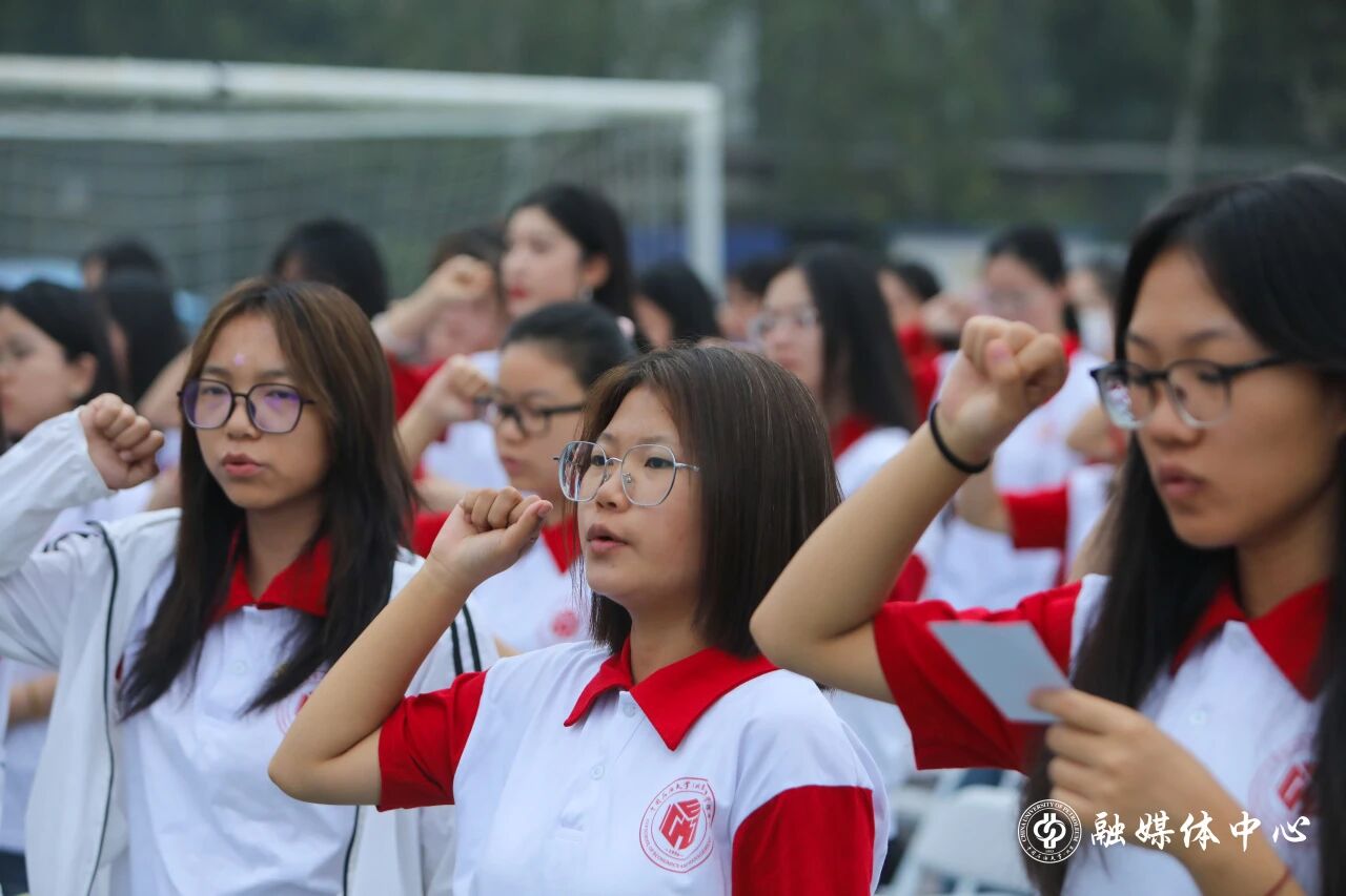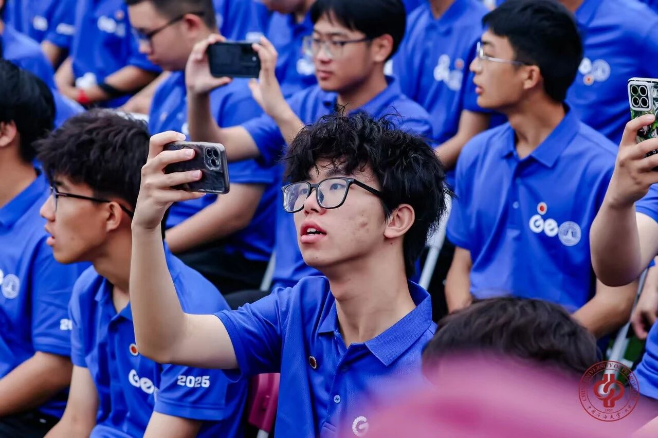 开学典礼设置了暖场表演、新生佩戴校徽、入学宣誓、向家长代表献花、向新生班主任代表颁发聘书等环节。洋溢着青春活力的歌曲串烧点燃了全体师生的热情与期待。适逢中国人民抗日战争暨世界反法西斯战争胜利80周年,在场师生同唱《我和我的祖国》。