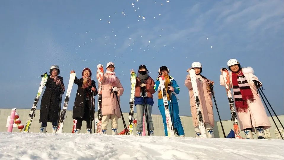 张小宇(左二)与朋友滑雪
