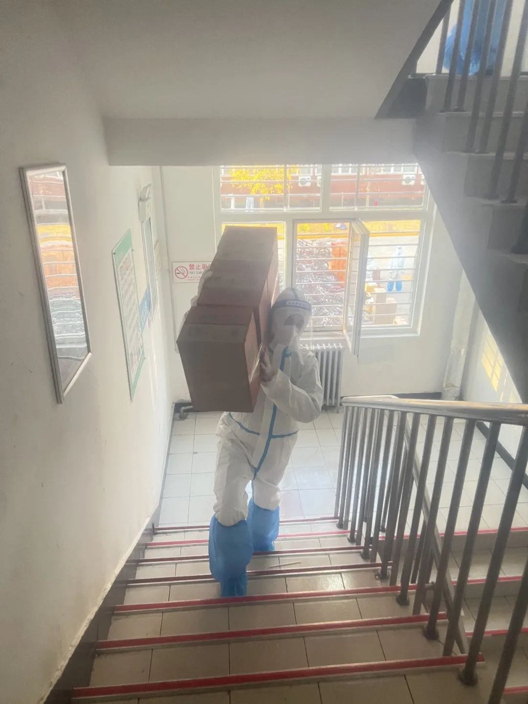 作为汇才公寓2号楼的一名楼长,她负责学生的早中晚三餐发放,组织学生核酸检测、相关物品的转运传递,每天只能休息几个小时,几乎就是在连轴转。