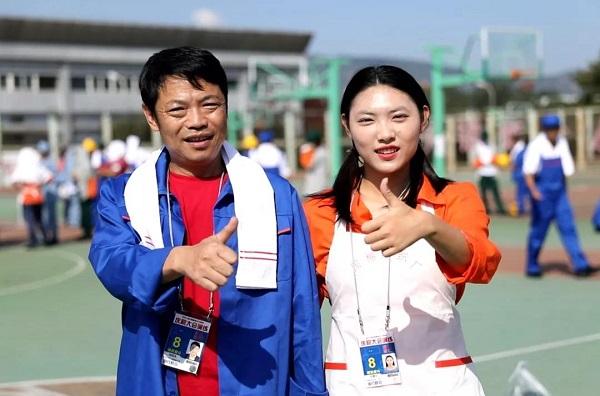 在中国建筑一局(集团)有限公司工作的父亲刘宝全跟女儿石大经济管理学院2018级本科生刘惠文,分属不同的单位却同属8号方阵,分别是不同的身份但却同时代表着产业工人、石油学子去阐释“艰苦奋斗”的深刻内涵,分别站在不同的方阵点位却拿着同样的小红旗做着同样的动作,共同为祖国献上祝福。