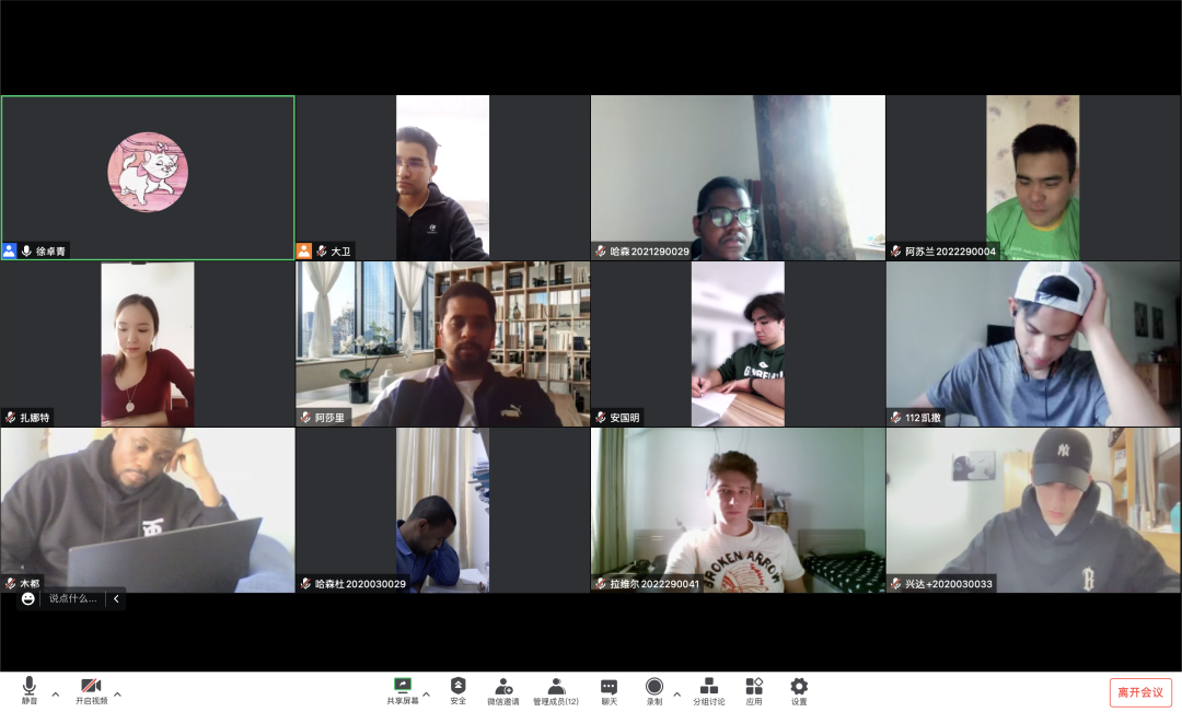 地质类2022级的大一新生们还进行线上集体晚自习,班委督促,打卡签到,开展主题班会,邀请学业优秀的同学分享经验,及时提醒同学们上课。国际教育学院的留学生们也开展线上集体自习。