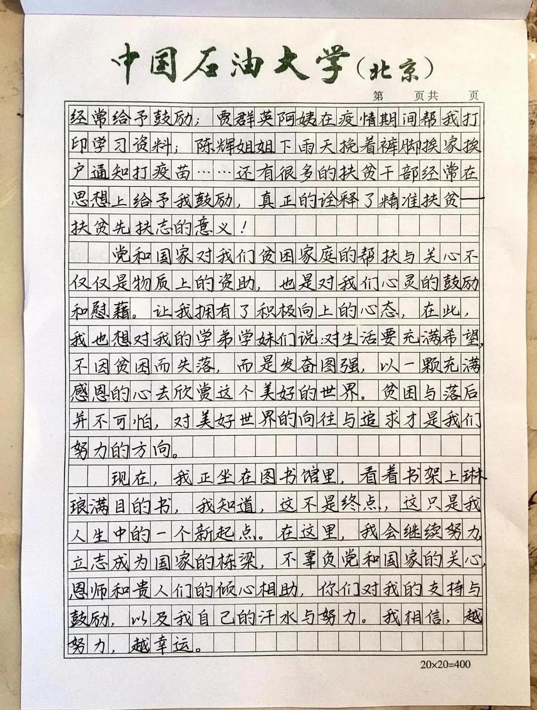 “我知道家里比较贫困。”喻鑫在信里写道,小时候,她连买一本小小的童话书都不好意思开口,怕加重家庭负担,只能一遍遍翻看姐姐的课本。