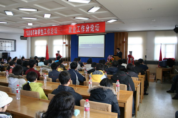 12月15日下午两点,由就业指导中心和石油天然气工程学院主办的2007年学生工作论坛就业工作分论坛在第四会议室隆重举行。吴小林副书记、陈大恩副校长、中国政法大学就业指导与服务中心主任解廷民、北京化工大学就业指导中心主任任世雄以及学校相关职能部门和各院系党总支副书记、团总支书记、辅导员代表、学生代表150余人参加了论坛,论坛由就业指导中心主任韩尚峰主持。