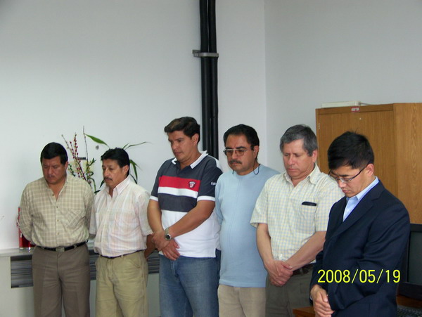 519下午1428分,在综合科研楼教室,正在继续教育学院培训的10名厄瓜多尔官员以及安第斯石油公司的高级顾问LUIS CAMACHO BARRIOS 先生、HSE部曹民权经理和继续教育学院国际部的老师一起为在四川汶川大地震中遇难的同胞们默哀。
