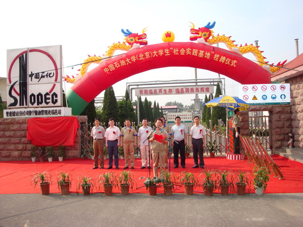 7月6日,石油天然气工程学院与鲁宁输油处在山东省临邑输油泵站隆重举行了共建大学生社会实践基地揭牌和协议签署仪式。学生工作处处长王英国,石油天然气工程学院院长陈勉教授,储运工程系主任张劲军教授等一行六人、鲁宁输油处相关领导及我校在泵站实习的全体学生和教师出席了揭牌仪式。