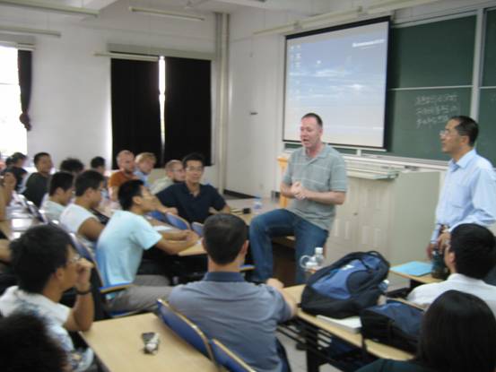 在各专业举办的座谈会中,我校品牌专业之一的市场营销专业座谈会尤为引人注意。除本专业的各位教师到场外,来自瑞典Uppsala大学的四位博士生以及Liverpool大学Simon P Snowden老师也应邀参加了座谈。会上,Simon P Snowden老师为同学们讲解了工商管理在英国的地位与相关的研究,并与同学们进行了多方位的交流,收到了良好的效果。