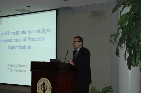 3月28日下午,著名催化专家,西班牙加泰罗尼亚理工大学(Universidad Politécnica de Valencia)教授Avelino Corma Canos 访问我校,在国际合交流中心作了题为”Use of HT Methods for Catalyst Preparation and Process Optimization“的学术报告,并与在座师生进行了学术交流。中国石油石化研究院院长刘显发、副总工程师付兴国,吉林大学于吉红教授等与会参与交流。
