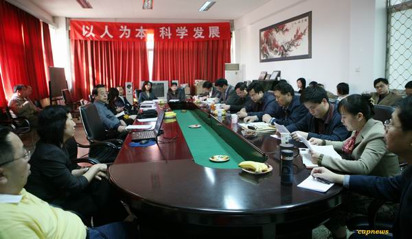4月14日上午人文社科部党总支在部会议室举行“深入贯彻科学发展观,切实提高思想政治理论课教学质量”的专题研讨会,校党委副书记刚文哲、雷玉江出席会议并讲话。