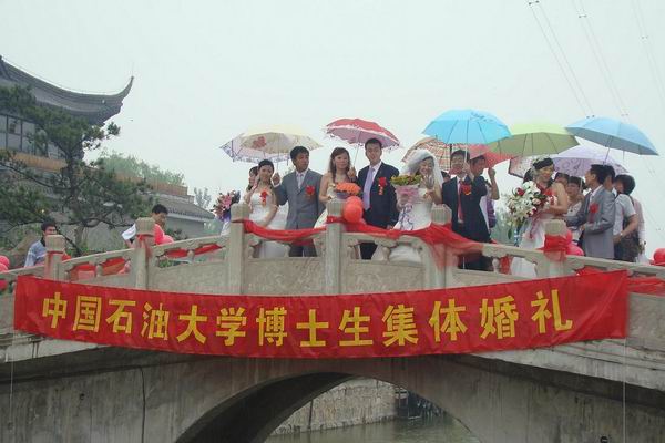 4对新人都来自石油院校,其中7人均为我校学生或校友,对石油事业的追求使他们相识相知我校文明、和谐的校园氛围促成了他们最终的牵手。在婚礼上,新人们表示在今后的生活中要发扬中华民族的优良传统美德,敬老爱幼,共建和睦、温馨幸福的家庭,同时也表示在今后的学习工作中,要携手并进、互帮互助、共同为我国的石油事业贡献自己的青春和力量。