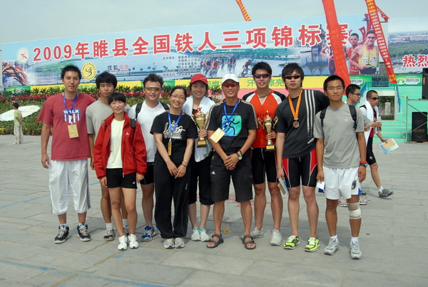 2009年全国铁人三项锦标赛于620-21日在河南省“中原水城”睢县举行,我校铁人三项代表队7名队员参赛并取得了优异的成绩。