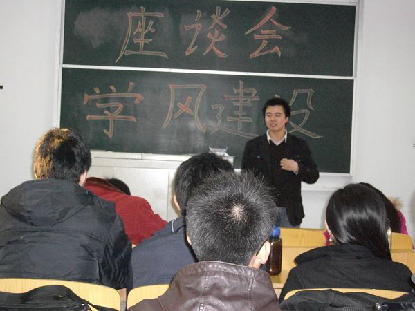 座谈会由石工学院研究生辅导员肖坤主持,会场气氛轻松而活跃。与会代表结合开学以来的学生工作实践,从班级自身的基本现状出发,分别对班级“班风、党风、学风、考风”中所患的各种“疑难杂症”,诊断“病情”,开出“处方”,可谓仁者见仁,智者见智。会议讨论结束后,石工学院研究生会主席张百灵同学做了总结发言,并生动形象地称此次座谈会是一次务实的为班级建设“求医问药、治病救人”的专家会诊。