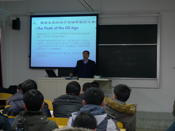 此次讲座主要介绍了石油峰值研究的最近动态、石油峰值年会的主要内容以及围绕石油峰值的最新争论。冯连勇教授为同学们详细介绍了媒体对石油峰值研究的相关报道,解释了证明石油峰值的主要数据,并列举了西哥坎塔雷尔油田的经典案例和最近发表的关于石油峰值的文章,以及自己的研究成果。使同学们对石油峰值有了更深更透彻的认识。