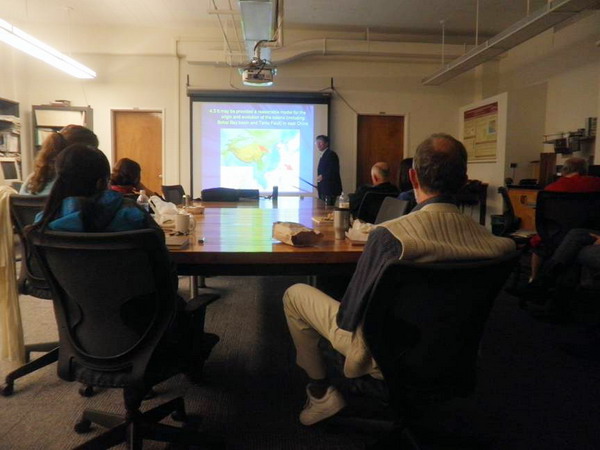 2010年1月20日,在UCLA(University of California, Los Angeles)访问的资源与信息学院童亨茂副教授,因其在断层模型研究的原创性工作,在参加2009年GSA(美国地质协会)年会(在美国Porland召开)和AGU(美国地球物理联合会)年会(在美国旧金山召开)后,应著名教授An Yin(尹安)的邀请,作了题为“A new math-mechanical model of brittle faulting: theory, analog modeling and geologic application” (脆性断层作用新的数学力学模型:理论,相似实验和地质应用)的学术报告。报告后进行了热烈的讨论。其中另外还有两个中国的访问学者(来自中国地质大学和中国地质科学院)也参加了本次报告会。