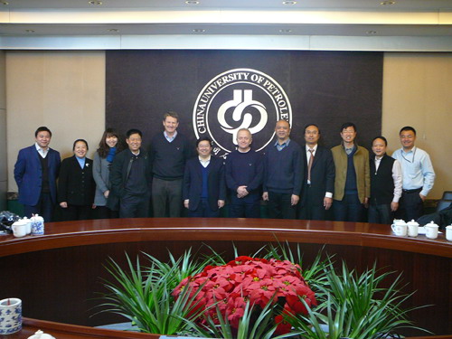2010年1月30日上午,挪威国家石油公司科技研发部勘探副总裁Ole Martinsen先生、挪威国家石油公司中国有限公司科技研发副总裁Jens-Petter Kvarstein先生等一行5人来我校进行合作交流。交流会由副校长庞雄奇教授主持,资源与信息学院院长朱筱敏教授、副院长柳广弟教授等6人参加了会议。