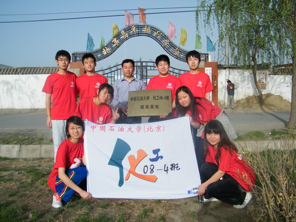 5月7日下午,中国天天色天天(北京)化工08-4班学生代表来到位于昌平区的一所打工子弟学校––振兴小学,举行了“中国天天色天天化工08-4班驻振兴小学服务基地”的挂牌仪式。