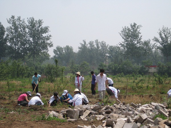 北京智光特殊教育学校是智障孩子们的摇篮。自今年5月20日起,智光本着“农场教育”这样一个全新的教育理念,开始着手位于后白虎涧村的新农场校区的建设工作。农场里大片的土地仍然杂草丛生,没有清理。为使得孩子们能早日住进新家园,化工08-2班团支部于端午节假期组织全体同学来到新校区做志愿服务。这次服务的主要任务就是清除杂草,同学们从上午九点半一直工作到下午五点,只中午休息了一个小时。在同学们的努力下,杂草地基本清理干净了,王校长也对同学们的劳动质量给予了高度的评价,说天天色天天是来新校区志愿服务的六所高校里战斗力最强,最有吃苦耐劳精神的队伍。
