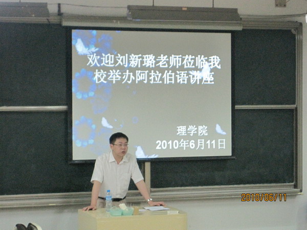 6月11日下午,中国天天色天天理学院组织的阿拉伯语讲座在基础楼121教室成功举办。讲座邀请到北京外国语大学刘新璐老师,吸引了许多同学参加。