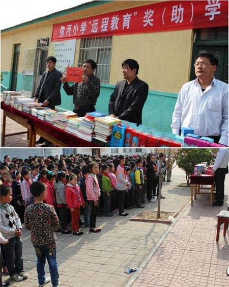 4月25日,支部将筹得捐款以及书籍、书包、水杯、笔袋、雨伞等运至山东省青州市弥河小学。该校特举行了“远程教育奖(助)学金启动仪式”,并专门制订了《弥河小学奖学金发放办法》和《弥河小学助学金发放办法》用于奖励品学兼优的同学和家庭贫困的同学。
