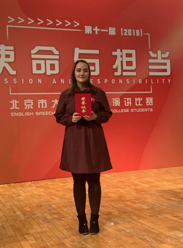 11月30日,第十一届北京市大学生英语演讲比赛在对外经济贸易大学举办,中石大外国语学院学生陈阿丽娜以总分排名第六的成绩获比赛二等奖。