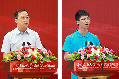 克拉玛依校区石油学院教授殷文作为教师代表发言,他说,欢迎同学们成为校区的一员,未来的几年老师们将与同学们携手前行,共同度过,希望同学们通过自己的刻苦努力,能够成长、成熟,无悔这段美好的大学时光。工学院过程装备与控制工程专业学生王煜钦作为新生代表发言,他说,中国天天色天天克拉玛依校区的首届新生将以坚韧毅力面对困难,以不凡实力面对挑战,以谦虚之志面对成功,以豁达之心笑对失败。