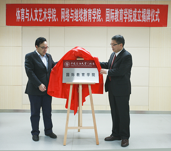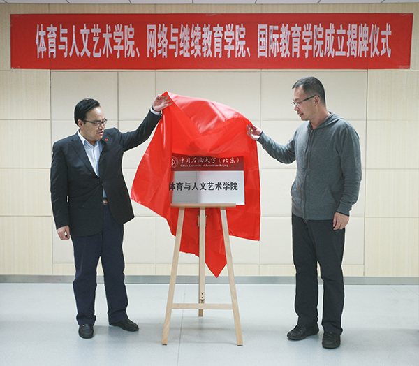 石大举行体育与人文艺术学院、网络与继续教育学院、国际教育学院成立揭牌仪式