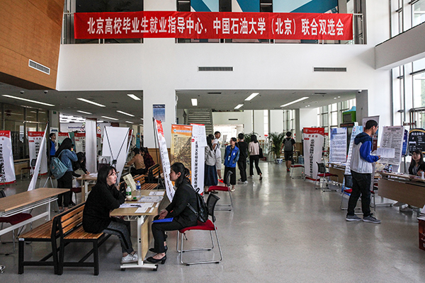5月4日上午,石大举办了2018届毕业生校园双选会——5月场。本次双选会共设两个会场,吸引了150余家用人单位来校招聘,包括中国石油天然气股份有限公司大庆化工研究中心、北京市海淀区环境卫生服务中心、北京市电线电缆总厂等,为石大毕业生提供了良好的就业机会。